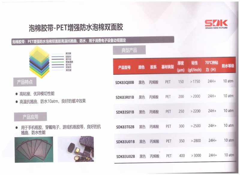 泡棉膠帶-PET增強防水泡棉雙面膠,SDK83Q00B,SDK83R01B,SDK83S01B,SDK83T02B,SDK83U01B,SDK83U02B