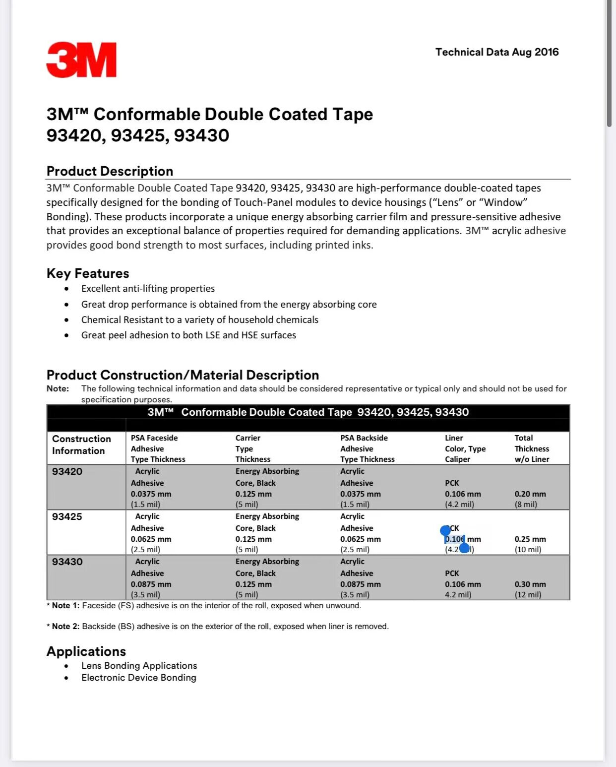 3MDC2008/3M DC2008 3MDC2011S2/3M DC2011S 3M4618 3MVHB膠帶3M4622 VHB膠帶3M4624 V(白,3M1.6MM) 3M4647 VHB膠帶 3M4648