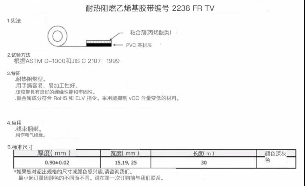 日東2238FRTV易手撕耐熱、阻燃電工膠帶絕緣膠帶